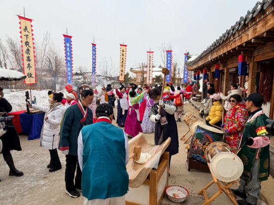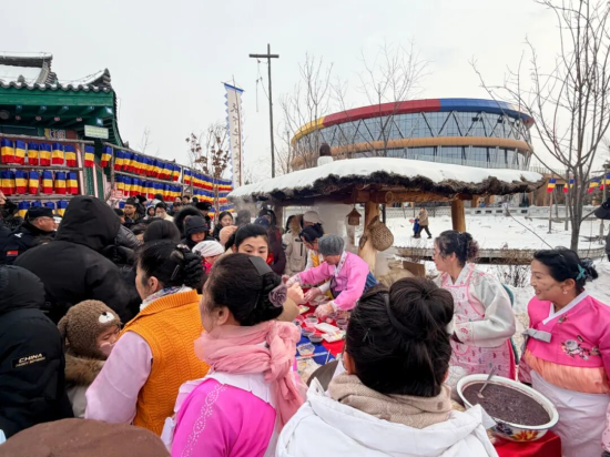 冰雪嘉年華人氣旺,州市聯(lián)動(dòng)塑精品。敦化市人民政府和延邊州文廣旅局共同打造“非遺賀新春·多彩延邊韻”暨敦化市“歡喜過(guò)大年·傳承啟新篇”首屆冰雪嘉年華活動(dòng),構(gòu)建州市兩級(jí)高效統(tǒng)籌、協(xié)同聯(lián)動(dòng)的工作機(jī)制;顒(dòng)于2月10日在中成朝鮮族生態(tài)村啟幕,現(xiàn)場(chǎng)規(guī)劃布局了非遺展示區(qū)、民俗體驗(yàn)區(qū)、冰雪運(yùn)動(dòng)區(qū)、特色美食區(qū)、年味市集區(qū)五大功能板塊,累計(jì)推出非遺展演、民俗互動(dòng)、冰雪賽事等各類特色活動(dòng)22場(chǎng),邀請(qǐng)敦化市各級(jí)非遺傳承人現(xiàn)場(chǎng)開展技藝展演,布設(shè)65個(gè)沉浸式體驗(yàn)點(diǎn)位,900余名演職人員、工作人員及志愿者全程提供保障服務(wù)。