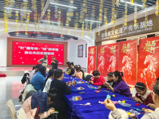 敦化市歷史博物館開展的“針藏年味·線納新!鼗履晔肿骶幙椂Y韻雅集”活動(dòng)溫情滿滿,非遺老師帶領(lǐng)游客一針一線編織新年禮物,指尖流轉(zhuǎn)間,傳統(tǒng)年俗的魅力盡顯。