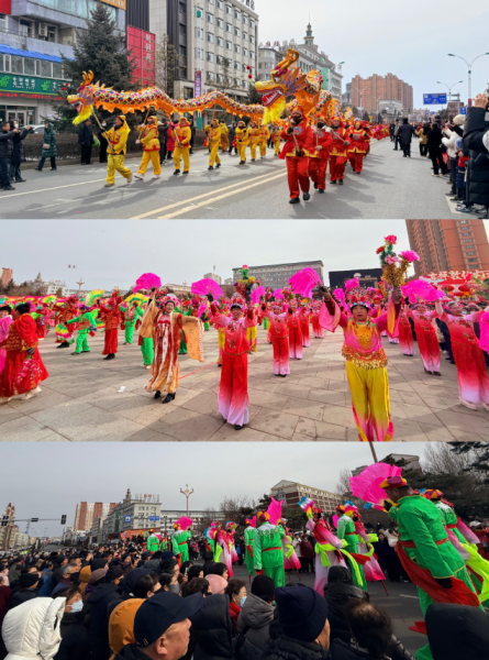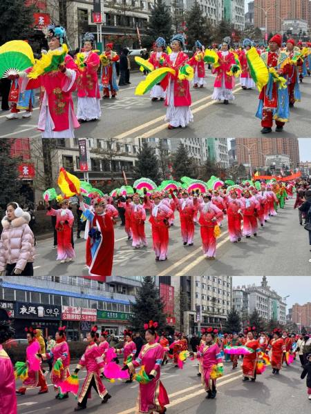 20支秧歌隊(duì)伍從大劇院出發(fā),沿南湖大街至敖東大街與長白路交匯處行進(jìn)展演,傳統(tǒng)東北大秧歌、滿族秧歌輪番登場,踩高蹺、舞龍舞獅……各類非遺絕活悉數(shù)展現(xiàn)。樂隊(duì)嗩吶與鑼鼓镲交織出快慢錯(cuò)落的傳統(tǒng)曲牌,演員們將秧歌的精髓演繹得淋漓盡致,成為街頭流動(dòng)的風(fēng)景線,隊(duì)伍一路載歌載舞,所到之處歡呼不斷,喜慶氛圍遍布敦城街巷,生動(dòng)展現(xiàn)“吉祥敦化”的和諧盛景。
