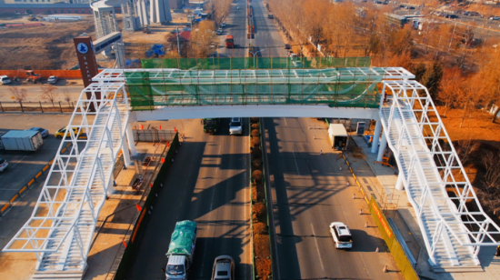 中新網(wǎng)吉林新聞11月17日電(記者 石洪宇)近日,記者從吉林省永吉縣獲悉,吉林鐵道職業(yè)技術(shù)大學(xué)過街天橋工程項(xiàng)目主體鋼結(jié)構(gòu)工程已施工完成,正在進(jìn)行天橋頂棚的骨架安裝工作,預(yù)計(jì)在12月末全部完成施工。
