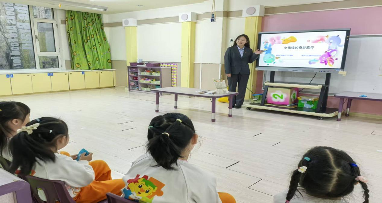 考慮到幼兒注意力特點,主講人王琳還設計了“錢幣小法官”游戲:她展示不同場景卡片,比如“小朋友幫媽媽保管手機,不隨便點開付款鏈接”“陌生人要借手機轉(zhuǎn)賬,小朋友說‘要問爸爸媽媽’”,讓孩子們判斷“做得對不對”。孩子們積極舉手,有的站起來模仿卡片里的小朋友說話,有的拉著同伴一起討論,原本抽象的安全規(guī)則,變成了能判斷、能模仿的具體行為,現(xiàn)場笑聲與回答聲此起彼伏,連老師都忍不住加入互動。
