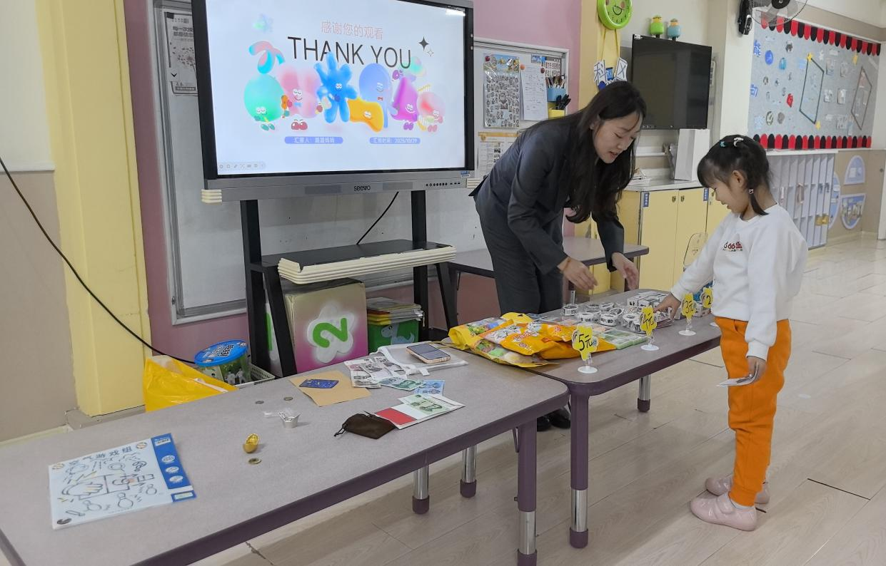 講解“錢幣發(fā)展史”時,工作人員沒有單純說教,而是先拿出提前準備的貝殼、銅錢模型,笑著問小朋友:“大家摸摸看,這些‘古代的錢’和我們現(xiàn)在用的紙幣,摸起來感覺一樣嗎?”孩子們立刻圍攏過來,輪流接過模型,有的說“貝殼滑滑的,像小扇子”,有的舉著銅錢喊“這個中間有洞,能穿繩子!”。工作人員順著孩子們的發(fā)現(xiàn)繼續(xù)引導:“以前沒有手機支付,人們就用貝殼、銅錢買東西,現(xiàn)在我們用紙幣、刷手機付錢,但不管哪種方式,都要好好保護自己的‘錢’哦!陛p松地觀察與對話,讓孩子們自然理解了貨幣的變化。