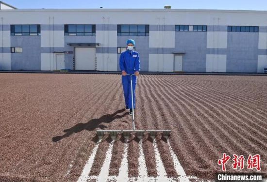 9月13日,梅河口松子加工企業(yè)工人在晾曬松子。 中新社記者 張瑤 攝