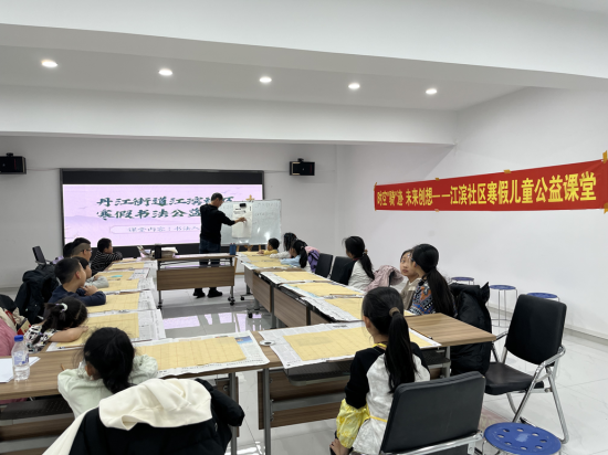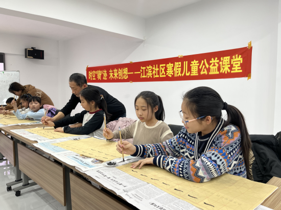 翰墨飄香潤育童心,筆走龍蛇書寫成長。江濱社區(qū)黨委以傳承中華優(yōu)秀傳統(tǒng)文化為抓手,依托書法公益課堂搭建文化傳承平臺,以筆墨傳文化、以書香育新人。一是名師領(lǐng)航夯基礎(chǔ)。邀請轄區(qū)書法教師段老師現(xiàn)場授課,以專業(yè)教學(xué)助力孩子們感受書法魅力、傳承優(yōu)秀文化;二是循序漸進(jìn)長才干。段老師從握筆姿勢、基本筆畫教起,聚焦楷書基礎(chǔ),通過示范指導(dǎo)、一對一糾正,幫助孩子們扎實(shí)掌握書寫技巧,培養(yǎng)持之以恒的韌勁、嚴(yán)謹(jǐn)認(rèn)真的態(tài)度、精益求精的追求;三是以書潤心強(qiáng)自信。結(jié)合書寫春聯(lián)、福字等形式,與孩子們一同揮毫潑墨,讓孩子們在筆墨間體悟傳統(tǒng)文化的博大精深,在書寫中根植文化自信,在傳承中凝聚民族力量,推動中華優(yōu)秀傳統(tǒng)文化在青少年中薪火相傳。