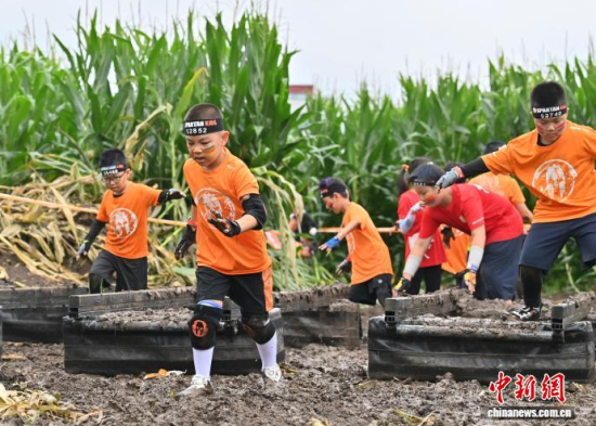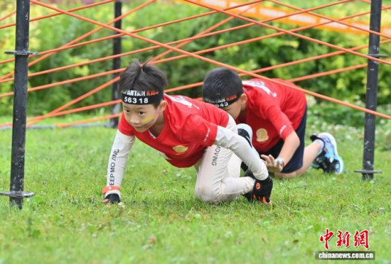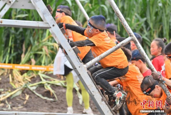 7月25日,2025斯巴達勇士兒童賽長春站在卡倫湖力旺實驗學校開賽。當天大雨傾盆,參賽的小選手們熱情不減,紛紛化身“小勇士”,在泥濘的賽道上勇闖障礙、攀爬坡道。圖為參加斯巴達勇士兒童賽的選手在比賽中。中新社記者 張瑤 攝