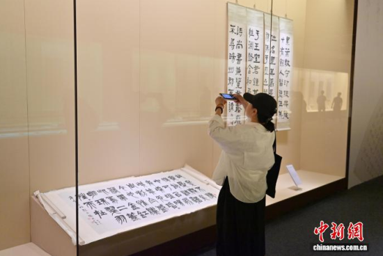 9月10日,參觀者在位于吉林省長(zhǎng)春市的吉林省博物院參觀董其昌的《戲鴻堂雜書(shū)冊(cè)》。近日,“吉林省博物院藏明清書(shū)法精品展”在長(zhǎng)春開(kāi)展,此次展覽遴選該院所藏明清書(shū)法精品五十余件,均為珍貴文物。展覽不僅系統(tǒng)梳理了明清兩代書(shū)法藝術(shù)的發(fā)展脈絡(luò),更是對(duì)中華優(yōu)秀傳統(tǒng)文化的傳承與弘揚(yáng)。中新社記者 張瑤 攝