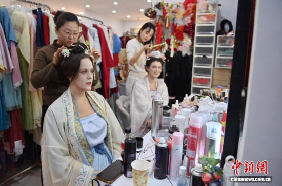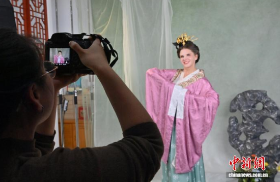 11月9日,在吉林長(zhǎng)春的一家漢服體驗(yàn)館,德國(guó)友人身著精美漢服拍攝寫真。近年來(lái),漢服日益受到外籍人士青睞。該館已為超百名外籍人士提供漢服體驗(yàn)和拍攝服務(wù),讓他們?cè)诔两脚臄z中,了解中國(guó)傳統(tǒng)文化。中新社記者 張瑤 攝