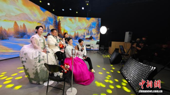 資料圖:延邊歌舞團(tuán)演員線上直播。延邊州委宣傳部供圖