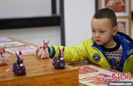 資料圖為甘肅省蘭州市一非遺產(chǎn)品展廳內(nèi),外國小朋友正在挑選非遺產(chǎn)品。 中新社記者 李亞龍 攝