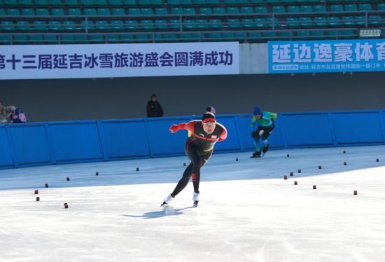 上午9時(shí),開賽儀式過后,賽場(chǎng)瞬間進(jìn)入“競速模式”。延吉市全民健身中心2.3萬平方米的室外滑冰場(chǎng)上,國際標(biāo)準(zhǔn)速滑道標(biāo)線清晰,光潔的冰面在天光下泛著光澤,早已嚴(yán)陣以待的選手們身著專業(yè)速滑裝備,腳蹬冰刀在熱身區(qū)反復(fù)滑行,擦冰聲、交流聲交織,賽場(chǎng)邊的觀眾席上,歡呼聲、加油聲此起彼伏,提前點(diǎn)燃了競技氛圍。