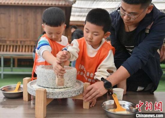 近來,鄉(xiāng)村農(nóng)事研學活動在長春頗受歡迎。4月27日,在長春市陳家店村,萌娃們紛紛化身“小農(nóng)人”,通過磨豆?jié){、采摘水果、參觀勞作工具等活動體驗農(nóng)事樂趣,親近自然。
