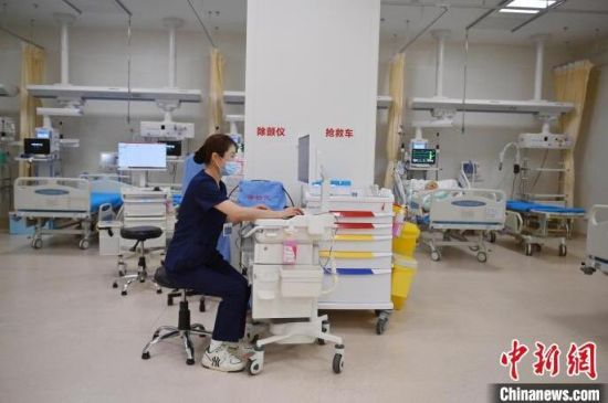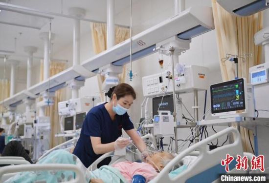 張力(左)對(duì)急診監(jiān)護(hù)區(qū)每位患者的情況都爛熟于心。護(hù)士們與患者朝夕相處,細(xì)心照護(hù),關(guān)系已經(jīng)超出了普通的醫(yī)患關(guān)系。張力說(shuō):“他們的親屬不能在身邊陪伴,但是我們每天可以和他們?cè)谝黄,我們和這些患者的關(guān)系像親人一樣! 張瑤 攝