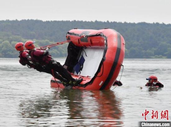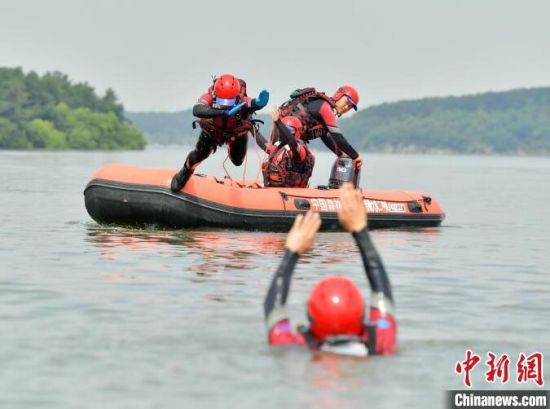 6月21日,吉林長春,消防救援人員正在進行水域救援翻舟自救科目訓練。目前,吉林省已進入汛期,吉林省森林消防總隊特勤大隊緊貼實戰(zhàn)水域救援任務,開展水域救援訓練。消防救援人員重點對橡皮艇操控、操舟繞標、翻船自救、O型救援等內(nèi)容開展訓練,全面做好防汛搶險等綜合性救援任務準備。(完)