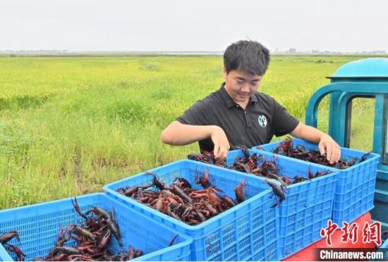 8月22日,在吉林省伊通縣三聯(lián)水庫灌區(qū)的小龍蝦苗培育基地,工作人員在展示小龍蝦。該基地科研團(tuán)隊(duì)在成功培育出了適應(yīng)北方寒地環(huán)境小龍蝦苗的同時(shí),還創(chuàng)新探索出稻田養(yǎng)殖蝦蟹新模式,通過生態(tài)良性循環(huán)提升稻米品質(zhì),也能更好地保護(hù)和利用黑土地。中新社記者 張瑤 攝