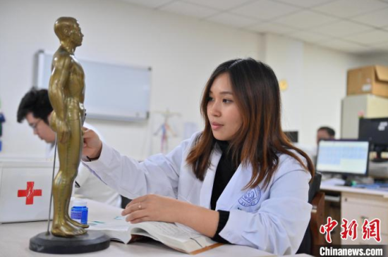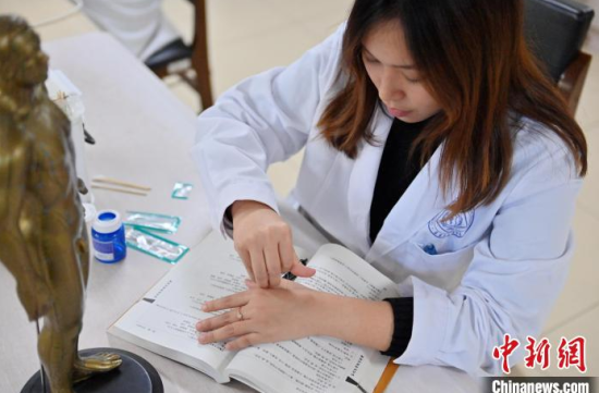 10月23日,吉林長(zhǎng)春,林玉花在練習(xí)針灸。來(lái)自泰國(guó)的林玉花是長(zhǎng)春中醫(yī)藥大學(xué)中醫(yī)內(nèi)科學(xué)的研究生,經(jīng)過一年多的深造,她越發(fā)愛上博大精深的中醫(yī)和中國(guó)傳統(tǒng)文化。林玉花說,她希望把在中國(guó)學(xué)到的中醫(yī)技藝帶回家,將來(lái)開一家中醫(yī)館。中新社記者 張瑤 攝
