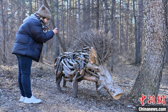 吉林長(zhǎng)春:枯枝變雕塑引游客參觀