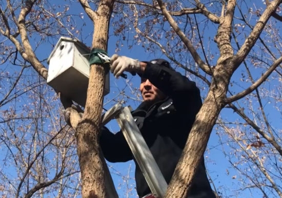 長春一公園連續(xù)多年設(shè)人工鳥巢助鳥類越冬