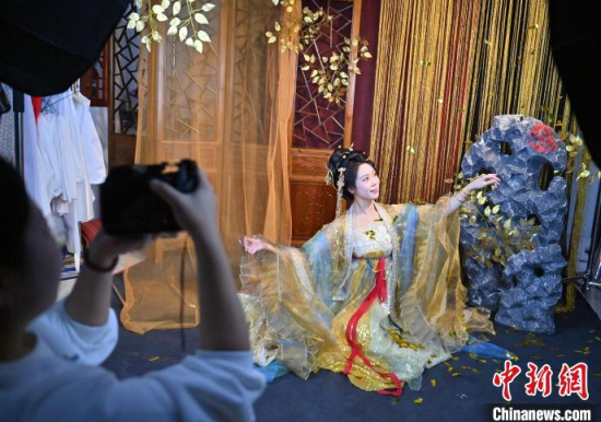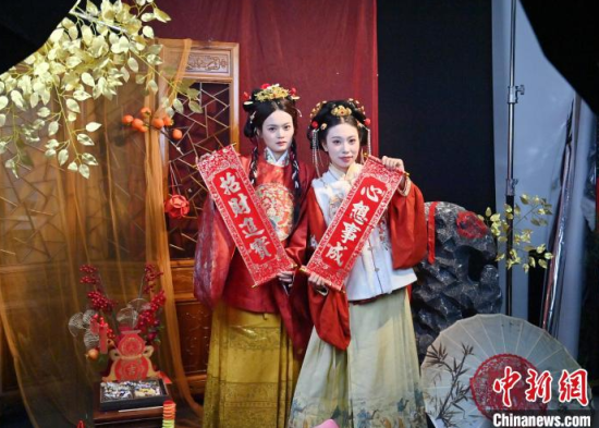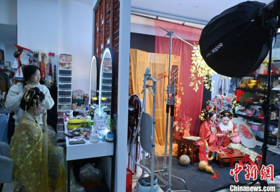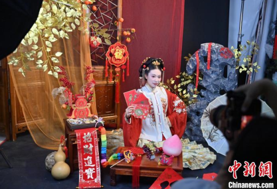 1月6日,吉林長(zhǎng)春,市民在拍攝漢服寫(xiě)真。店家介紹,農(nóng)歷蛇年春節(jié)將至,漢服寫(xiě)真成了顧客新需求,店家特推出百梅迎春、金蛇賀歲、招財(cái)進(jìn)寶等主題,深受市民喜愛(ài)。中新社記者 張瑤 攝