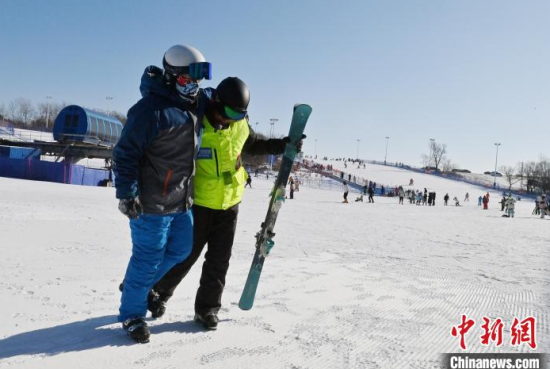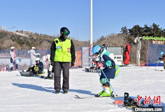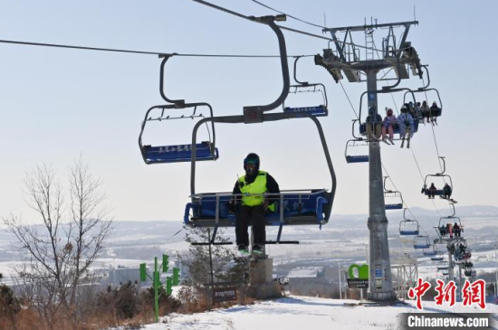 1月15日,在位于長春的天定山滑雪場,何海東在檢查雪道護(hù)網(wǎng)。何海東是一名滑雪巡救員,雪季期間,雪友數(shù)量激增,何海東的工作也變得異常繁忙。他要在零下二十?dāng)z氏度的天氣中日行三萬步,全面巡查雪道環(huán)境,排查安全隱患,如有意外他將第一時(shí)間對傷者實(shí)施救助。中新社記者 張瑤 攝