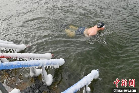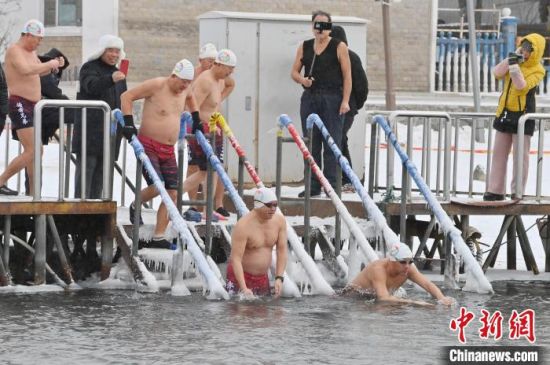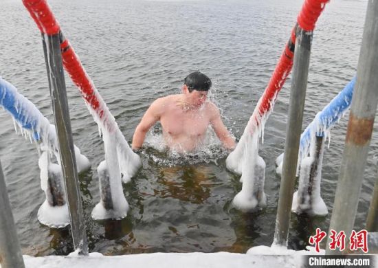 2月7日,在長春市南湖公園內(nèi),冬泳愛好者在零下19攝氏度的嚴寒天氣中冬泳鍛煉身體。 中新社記者 張瑤 攝