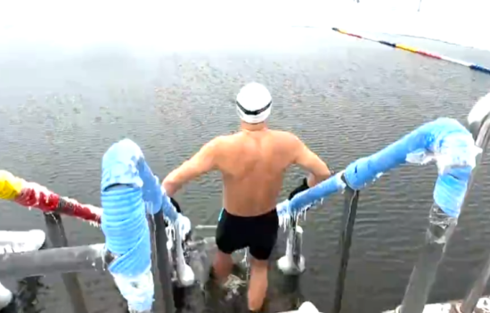 長春冬泳人挑戰(zhàn)低溫暢游冰湖迎新歲