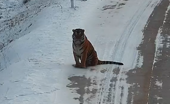 吉林和龍發(fā)現(xiàn)野生東北虎 頭似臉盆悠閑散步