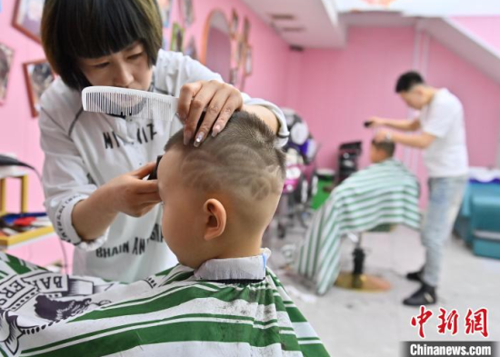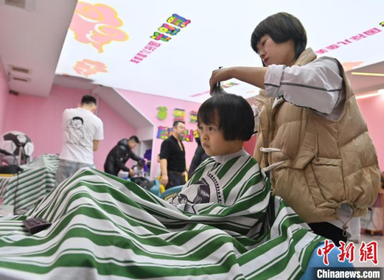3月1日,農(nóng)歷二月初二,在吉林長春一家兒童理發(fā)店,家長紛紛帶著孩子來“剃龍頭”,理發(fā)店還為孩子們設(shè)計了各種有趣的發(fā)型。中新社記者 張瑤 攝