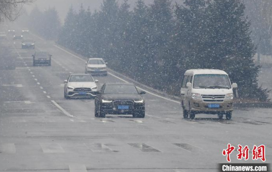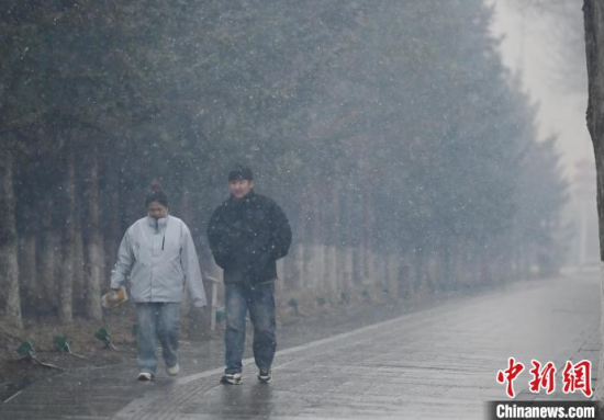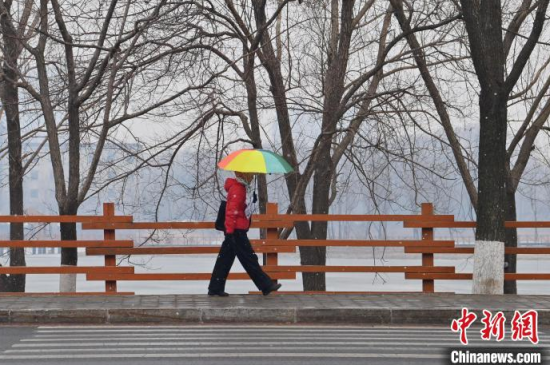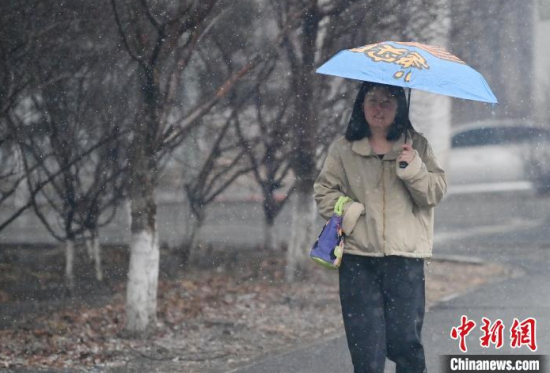 3月25日,吉林長春,市民冒雪出行。當(dāng)天,吉林省迎來雨雪天氣,多地進(jìn)入“降溫模式”,局地最低氣溫降至零下。中新社記者 張瑤 攝
