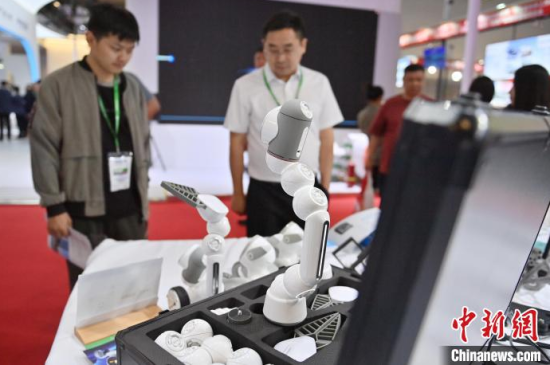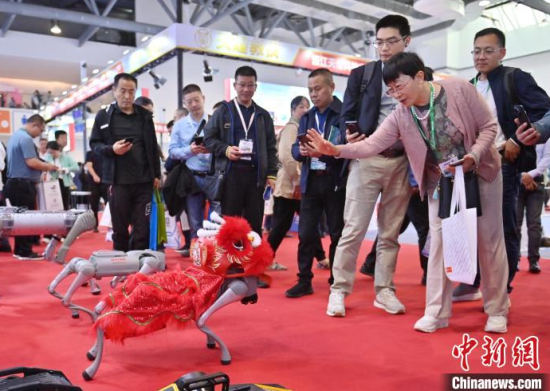 5月23日,第63屆高等教育博覽會(簡稱“高博會”)在長春開幕。本屆高博會由展覽展示與特色活動兩部分組成。其中,展覽展示面積12萬平方米,參展院校和企業(yè)6000余家。圖為高博會展覽現(xiàn)場,智能人形機(jī)器人吸引參觀者。中新社記者 張瑤 攝