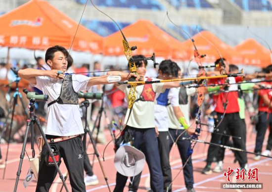 8月21日,吉林長(zhǎng)春,運(yùn)動(dòng)員參加比賽。 當(dāng)日,2025年全國(guó)射箭U16、U18錦標(biāo)賽在長(zhǎng)春開賽,中國(guó)各地96支射箭隊(duì)的721名運(yùn)動(dòng)員張弓搭箭,一較高下。 中新社記者 張瑤 攝
