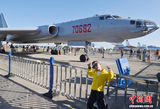 圖為運(yùn)-20A吸引參觀者的目光。圖為無偵-7。圖為殲-10C吸引參觀者。圖為小朋友和轟-6合影。圖為蘇-27吸引參觀者。