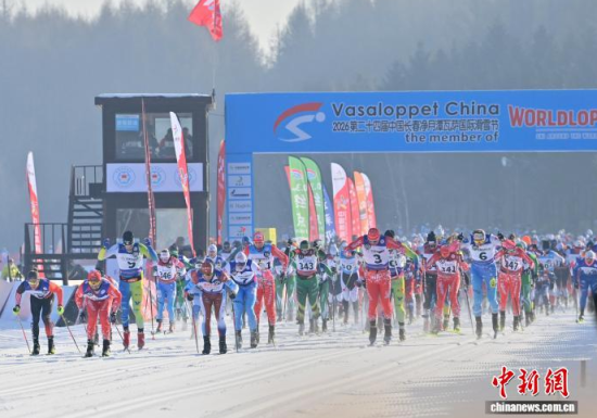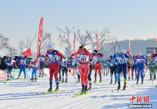 1月4日,第24屆中國(guó)長(zhǎng)春凈月潭瓦薩國(guó)際滑雪節(jié)在長(zhǎng)春開(kāi)幕,來(lái)自33個(gè)國(guó)家和地區(qū)的2227名專業(yè)運(yùn)動(dòng)員和大眾滑雪愛(ài)好者在凈月潭的林海雪原間展開(kāi)速度與耐力的較量。中新社記者 張瑤 攝