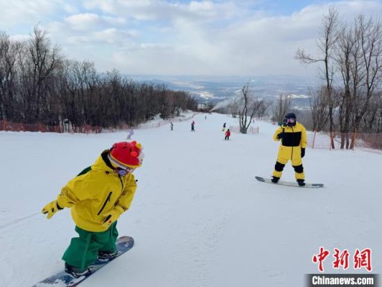 家長帶領(lǐng)兒童在吉林市雪場滑雪!±钍| 攝