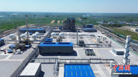 2025年7月15日,吉林白城,上海電氣洮南市風電耦合生物質綠色甲醇一體化示范項目投產(chǎn),其通過“綠電制氫+秸稈氣化”合成綠色甲醇。(資料圖) 王闖 攝